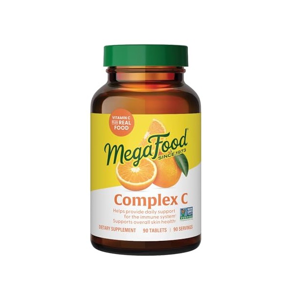 MegaFood MegaFood Complex C - Vegan Immune Support Supplement with Vitamin C 250 mg, Made with Real Food Including Orange, Cranberry & Brown Rice, Gluten-Free, Kosher - 90 Tablets, 90 Servings
