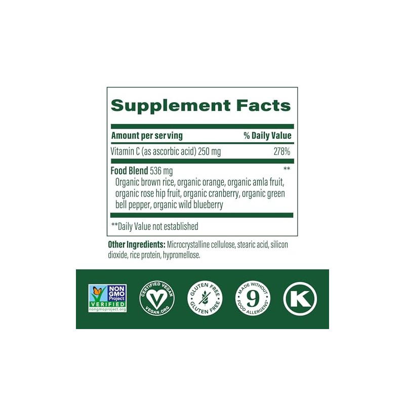• TAKE ANY TIME OF DAY: Adults take one of these Vitamin C 250 mg tablets daily with a beverage, even on an empty stomach; Each serving includes 536 mg of brown rice, orange, amla fruit, rose hip fruit, cranberry, green bell pepper, and wild blueberry