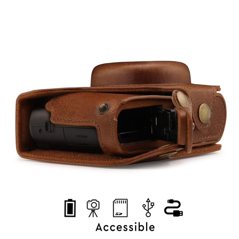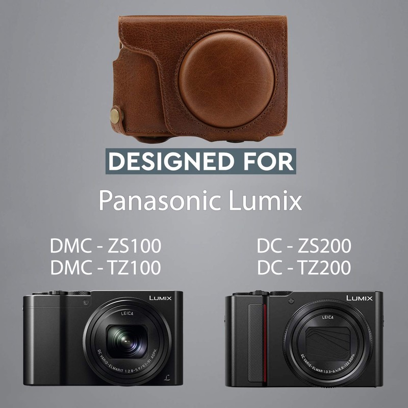 - Perfect Fit – The MegaGear premium genuine leather camera case with battery access has been specially made for the Panasonic Lumix DMC-TZ100, DC-TZ200, made of high-quality leather. Perfect fit for the best fit.