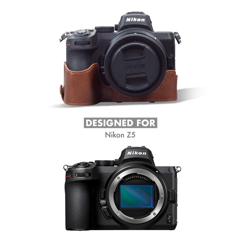- CUSTOM FIT - The MegaGear premium genuine leather camera case with battery access is specially tailored from premium genuine leather for the Nikon Z5 models for precise fit and coverage.