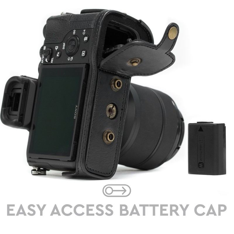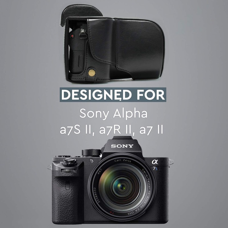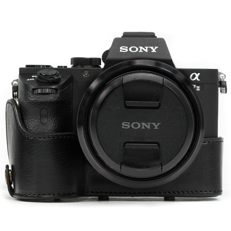 MegaGear Ever Ready Protective Leather Camera Case, Bag for Sony Alpha a7 II, a7R II, & a7S II Mirrorless Digital Camera and Lenses (Black) (MG524)