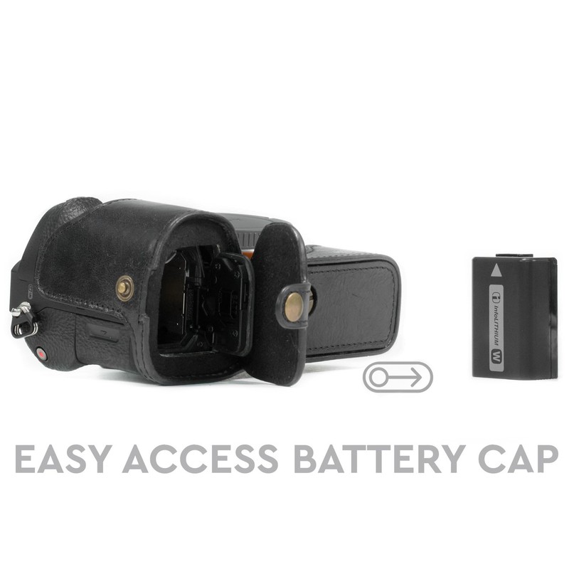• BESPOKE FIT - The MegaGear Premium Genuine Leather Camera Half Case with Battery Access is specifically tailored for the Sony Alpha A7S II, A7R II, A7 II for precision fit and coverage.