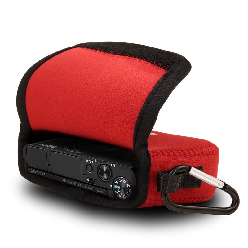 MegaGear MG612 Sony Cyber-shot DSC-HX99, DSC-HX95, DSC-HX90V, DSC-HX80 Ultra Light Neoprene Camera Case, with Carabiner - Red