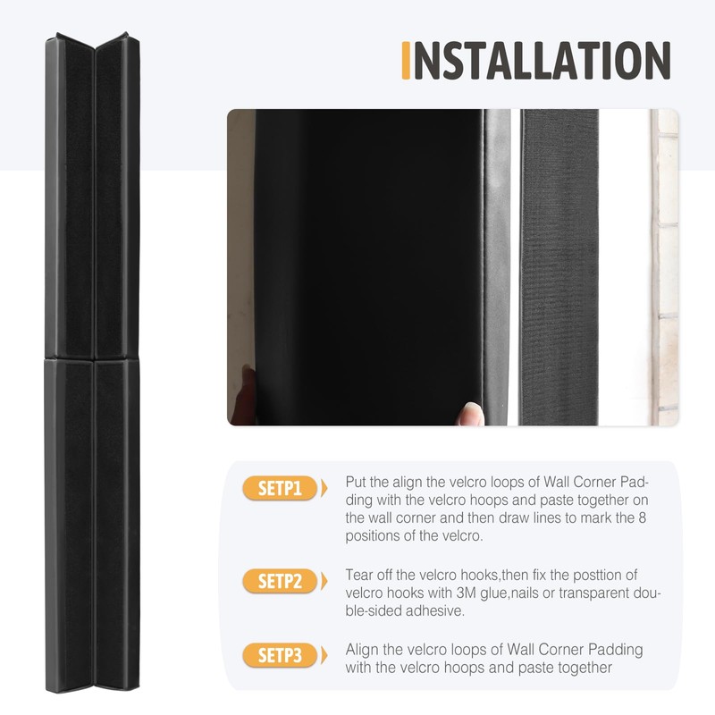 - 【Corner Safety Padding】This Wall corner Padding is made of 2” thick high-quality foam, high elasticity, and excellent cushioning. Even under intense impact, it is not easy to deform. Our impact absorbing corner post pads wrap sharp corners to provide an extra level of cushioning safety.