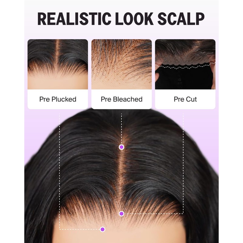 - 【Wear and Go Glueless Wig】Pre cut 6x5 closure wig, larger lace size maintains stability while allows versatile hairstyle. Real Invisible HD Lace, Blends Perfectly into Skin.