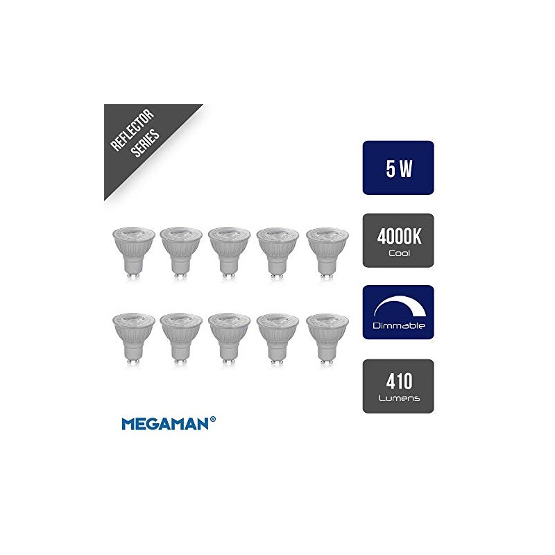 Megaman Gu10 Reflector Dimmable Led Lamp, 5 Watt, 4000K Colour Temperature, Cool White 10 Packs