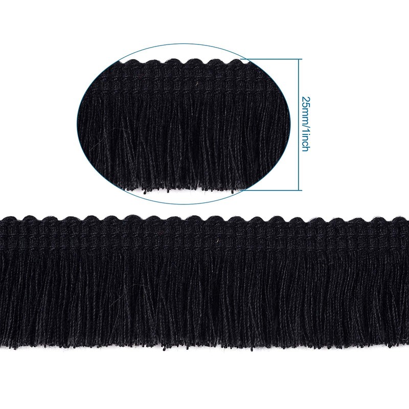 MegaPet Black Polyester Fringe Tassel Lace Trim 1 Inch x 82 Feet Chainette Fringe Fibre Trim for Sewing Quilting DIY Home Decoration