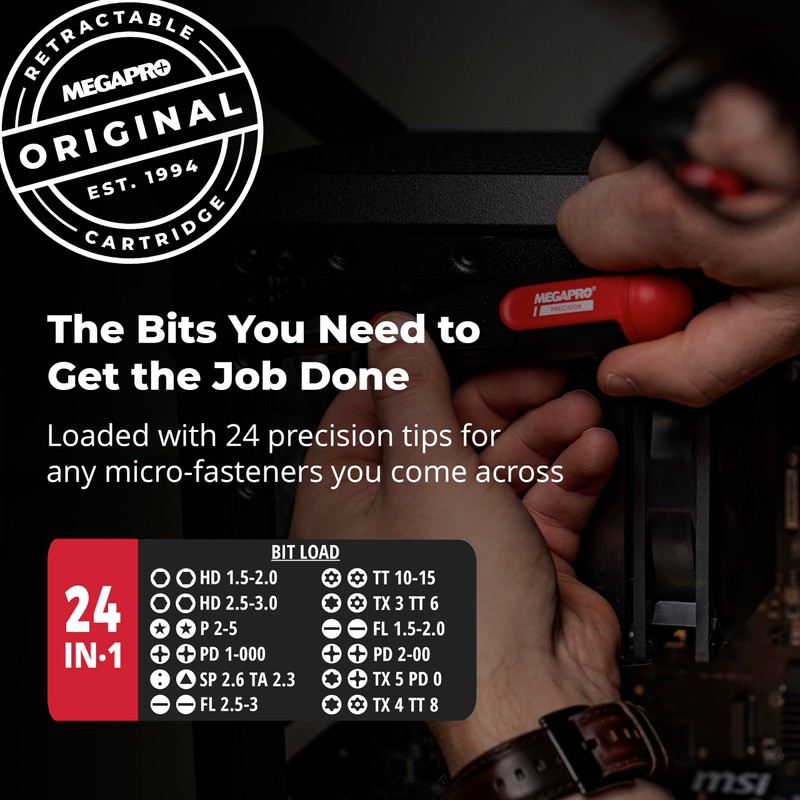 MEGAPRO® 24-in-1 Precision Multi-Bit Screwdriver | Small Screw Application | Micro-fasteners | Eyeglass & jewelry Repair | Small Electronics Maintenance | Precision Tamperproof Bits