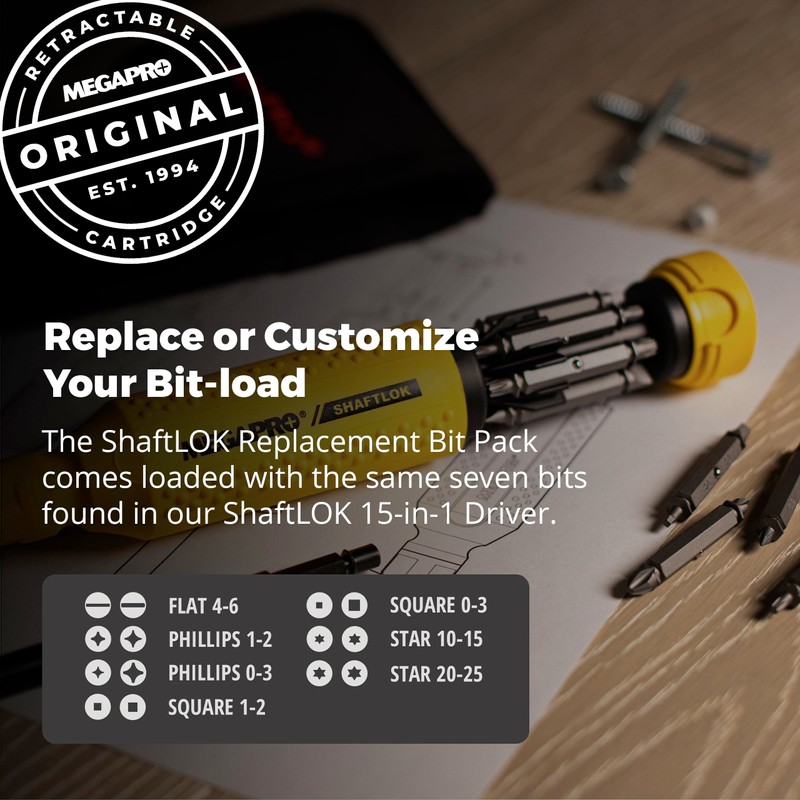 MEGAPRO Replacement Bit Pack - The ShaftLOK | 7 Double-Ended Locking Bits |