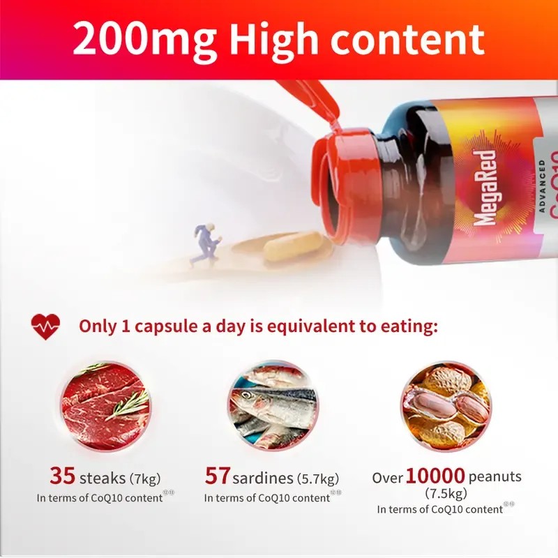 MegaRed Health High-content Coenzyme Q10 Soft Capsule for Staying Up Late to Protect Heart and Myocardium 200mg*90 Pills/60Pills/30Pills Fathersdaygift Supplement Edible Vitamin Healthcare Dietary
