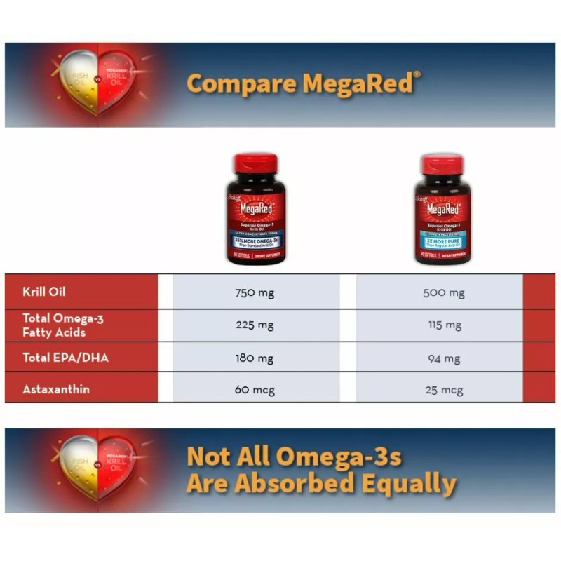 MegaRed SCHIFF MegaRed Superior Omega-3 Krill Oil Ultra Concentrate 750 mg, 80 Softgels