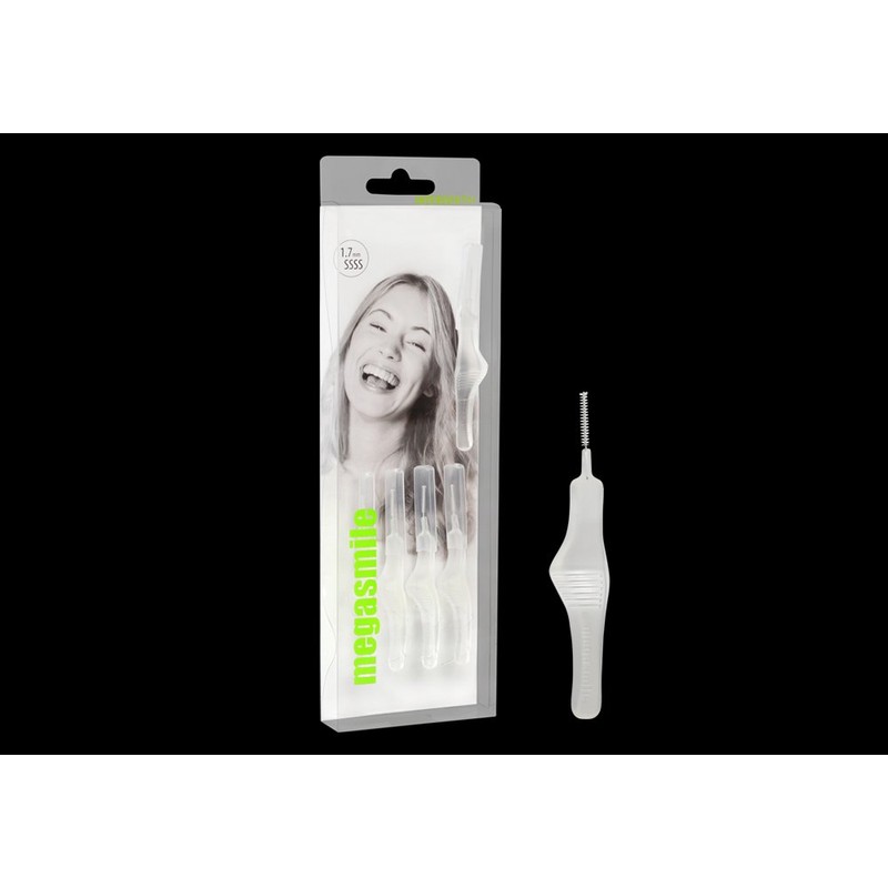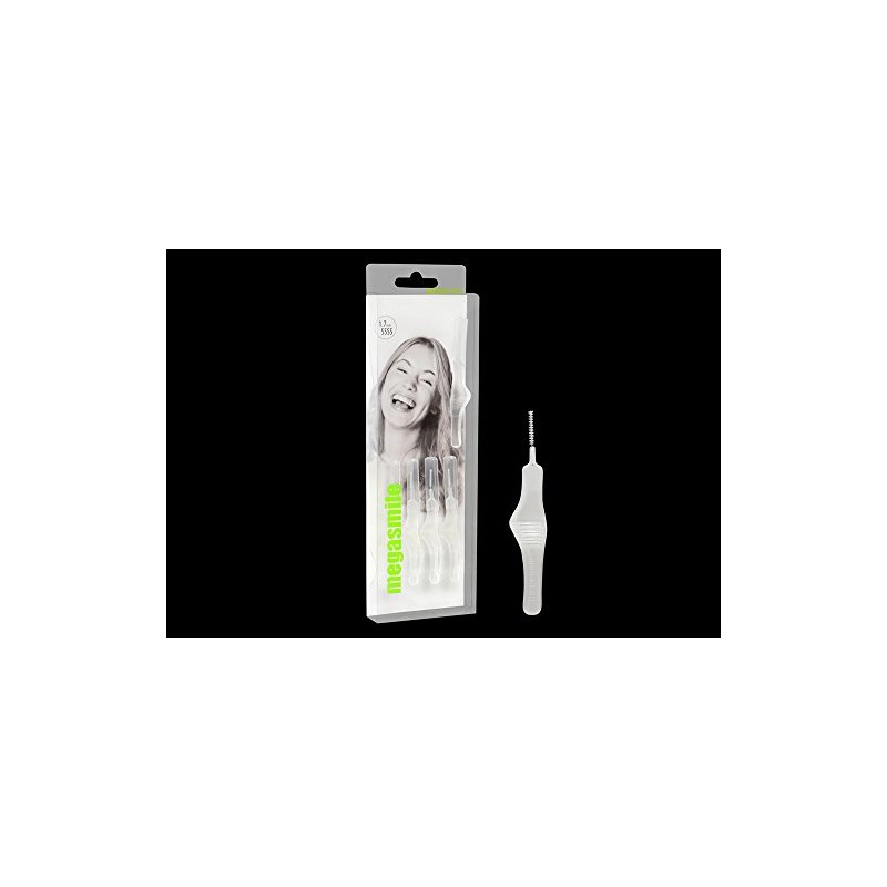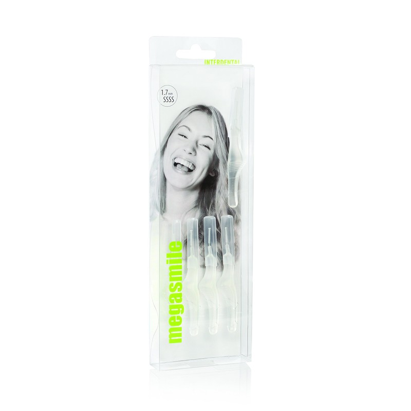 Megasmile Interdental Toothed Spacer Brush SSSS 1.7 mm / Pack of 5 with megasmile Interdental Toothbrush folded: from the ultra-fine brush with 1.7 mm diameter to 5 mm, the brush size adapts to the interdental space and not vice versa. Around braces, the dental spacer brushes are just as practical: the white plastic coating protects teeth and braces. Introduce, pull out ready! Dangerous deposits and sticky growing bacterial plaque are removed. Megasmile Interdental Spacer Brush for Clips and Brackets - And the best end for the environment: Megasmile Toothbrush Handles are ultra-light and are made from 100% petroleum-free, ecologically sustainable material. With this new concept, megasmile makes the frequent toothbrush change ecologically meaningful.