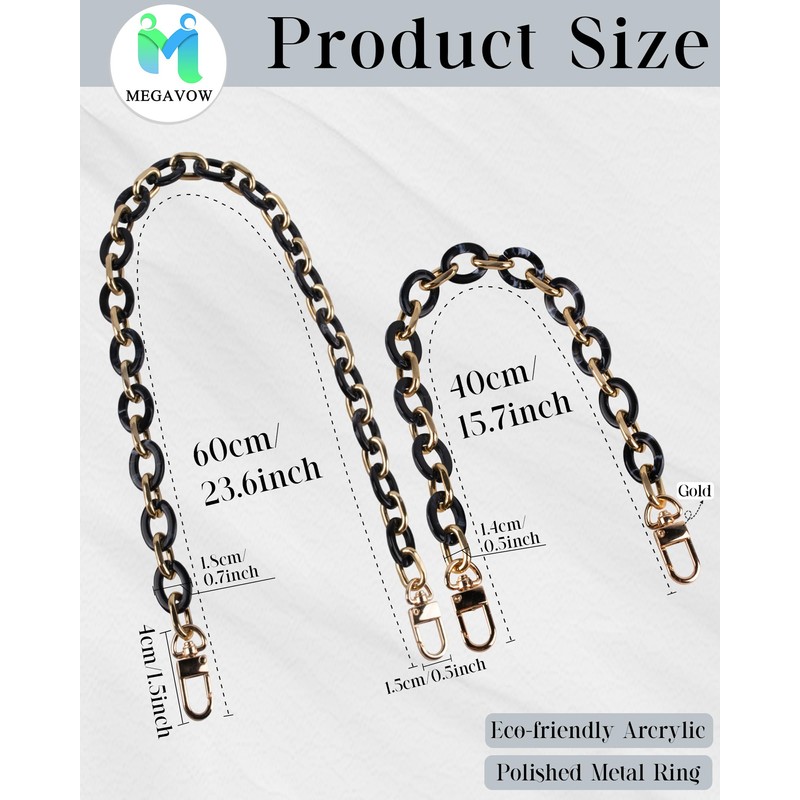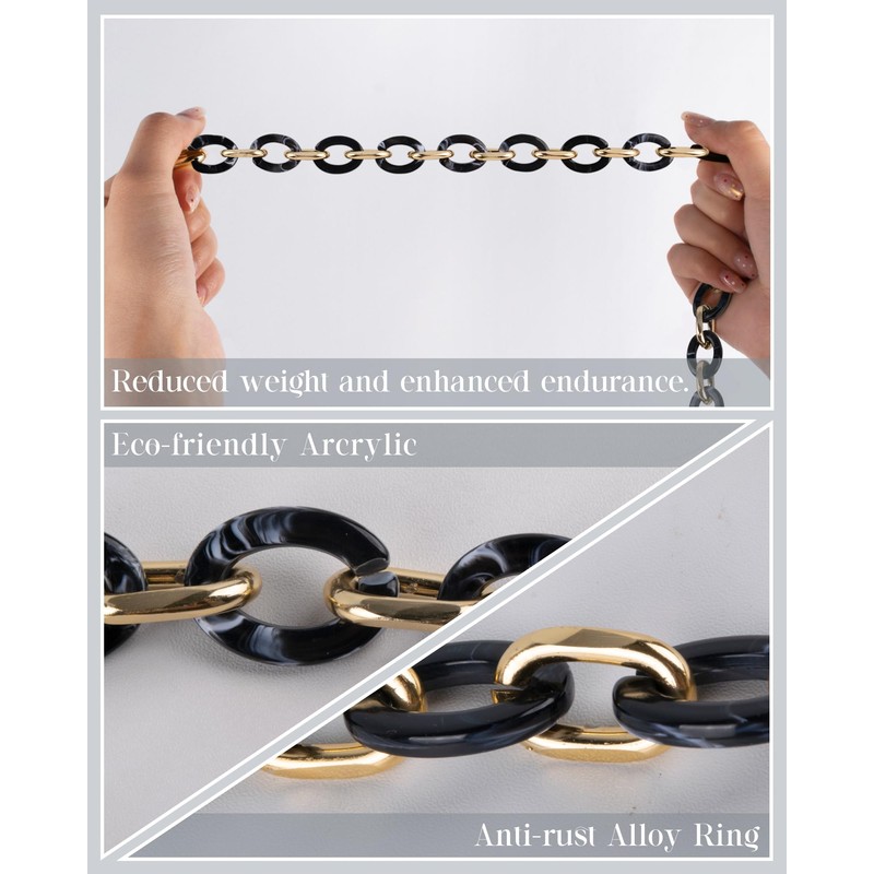 - HIGH QUALITY: The necklace is made of environmentally friendly acrylic with a combination of marble texture and alloy design, such small details give it an extra touch of style and make it a practical and stylish bag chain accessory. Metal hooks of the chains are also durable, can be used for a long time.