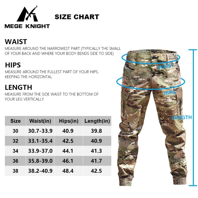 MEGE KNIGHT Camouflage Tapered Cargo Pants for Men, Camo Joggers Lightweight Ripstop BDU Combat Hiking Hunting Tactical Pants