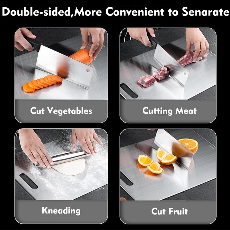 - 【👍Preserves Your Health】Our board is crafted from Pure, Medical-Grade Titanium, the same material trusted in most surgical implants. Unlike wooden or bamboo boards, when the kitchen knife cuts, there will be no cuts, grooves & punctures on our boards, and this board doesn’t absorb liquids, making it the safest choice for your kitchen.