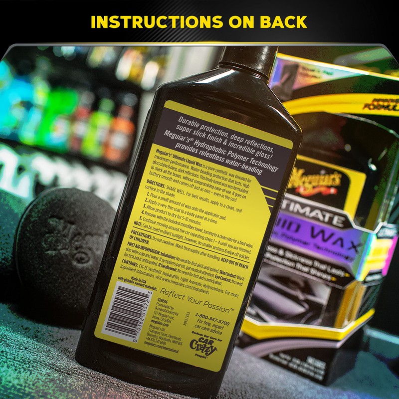 Meguiar’s Ultimate Liquid Wax is a premium paint protectant with a pure synthetic wax blend for maximum performance. The improved formula now delivers even better durability than before. Meguiar’s proprietary Hydrophobic Polymer Technology increases surface tension for relentless water beading action that lasts. This advanced formula also delivers deep, dark reflections, incredible gloss and shine while leaving a slick finish. This finely tuned wax was formulated to check all the boxes, without compromising ease of use. It goes on butter smooth and comes off just as nice – even in the sun! Premium foam applicator and microfiber towel included. Ultimate is also available in a paste wax. (1) Title draft language created by generative AI and reviewed, edited, and revised by Meguiar’s.