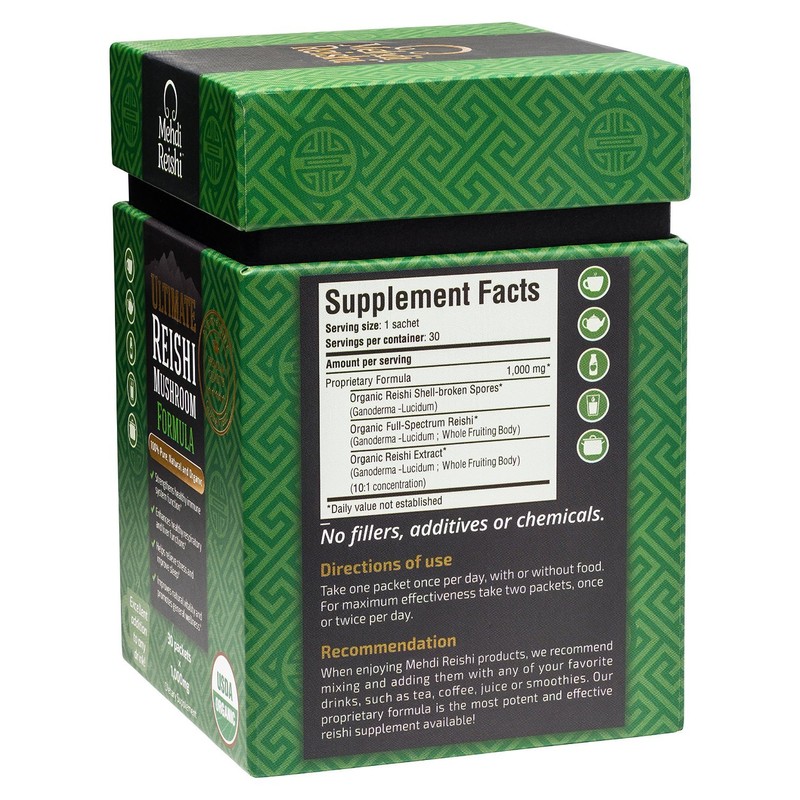 Our Ultimate Reishi Mushroom Formula by Mehdi Reishi contains both organic spores and extract, and is our most effective and versatile product. Our Formula powder