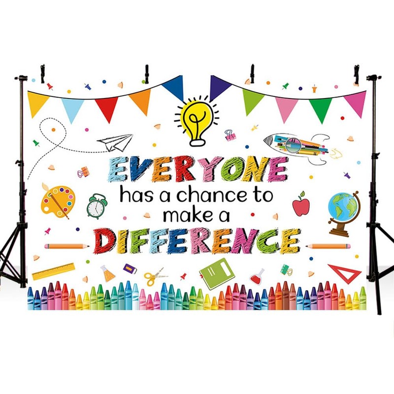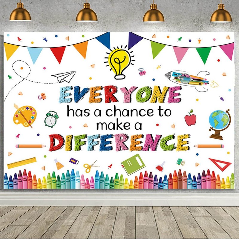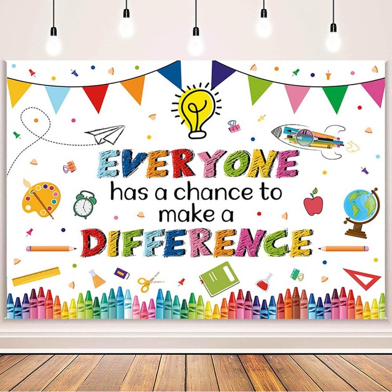 MEHOFOND 7x5ft Welcome Back to School Backdrop Everyone has a Chance to Make a Difference Decorations Banner White First Day of School Inspirational Posters Motivational Banner Photo Booth Props