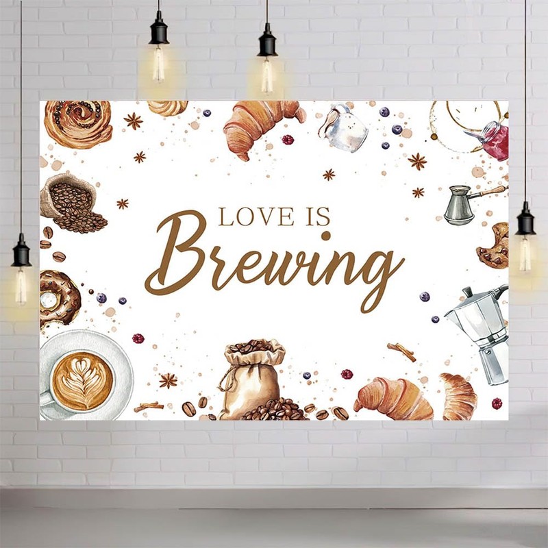 MEHOFOND 8x6ft Coffee Bridal Shower Backdrop Love is Brewing Wedding Photography Background Coffee Brunch Tea Bachelorette Engagement Party Decor Fall in Love Bride to Be Party Banner Photo Props