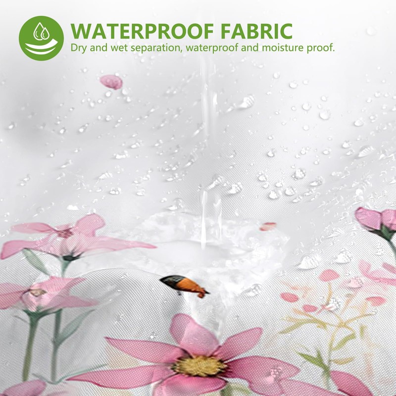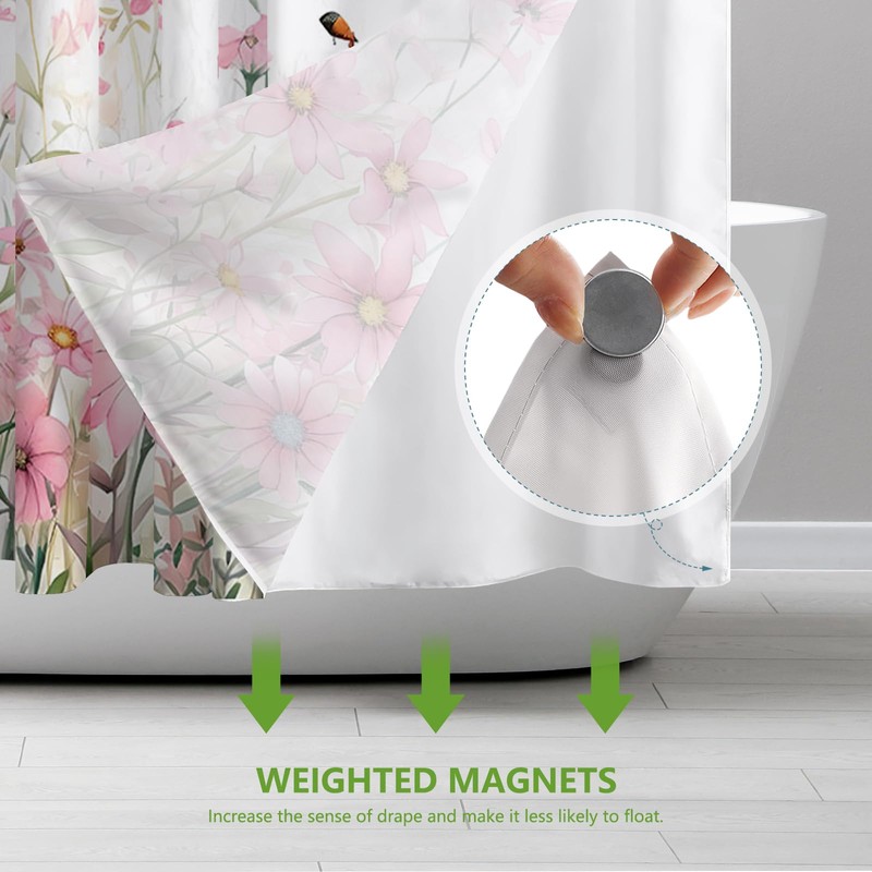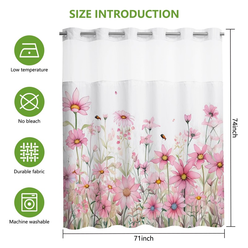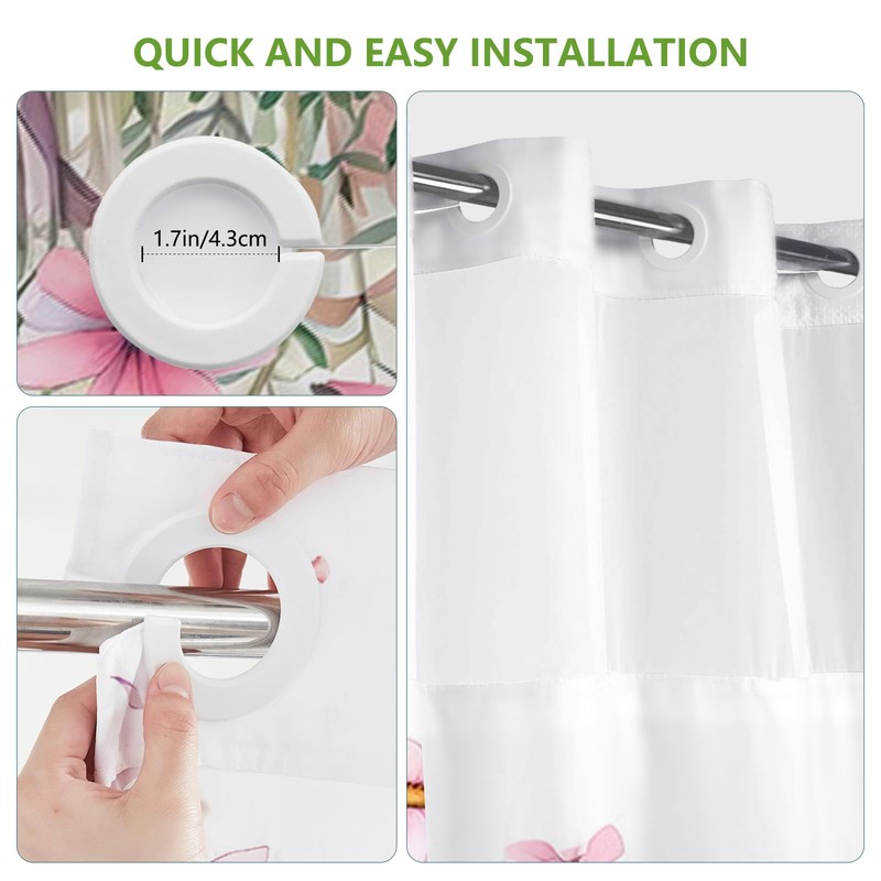 - No hook design:This spring floral shower curtain designed with "Split Rings", that let you hang them easily,no need to buy hooks and no need to remove the rod