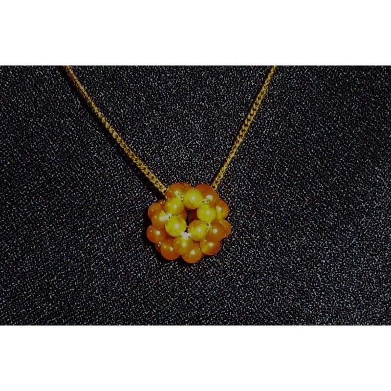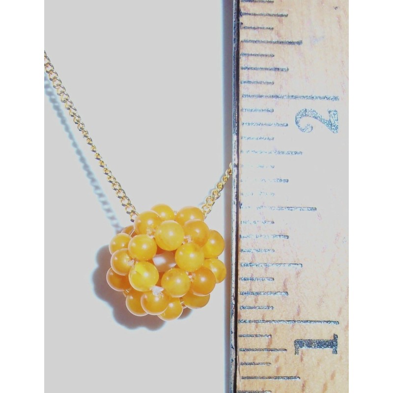 MEI BALTIC AMBER 3MM BEADS WOVEN BALL PENDANT W/16" GF DISPLAY CHAIN INCLUDED