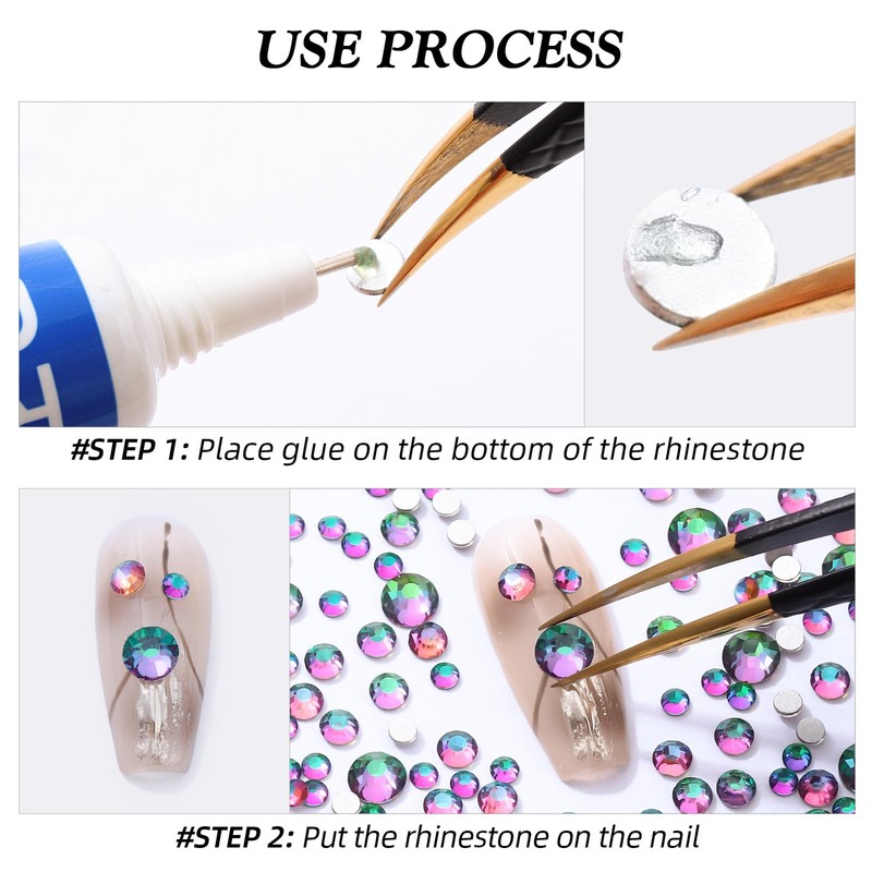 - Use tweezers and Picking Pen gem picker to pick rhinestones, There is no glue on the bottom, additional nail gel is required, or other professional glue for makeup or nails. Can use E6000/E7000 super glue to fix on crafts, art decoration. not hotfix