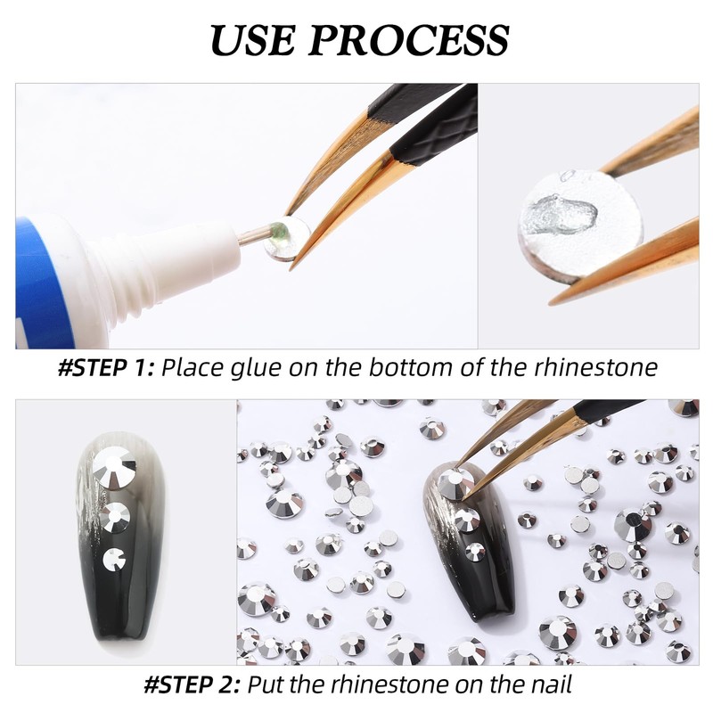- Use tweezers and Picking Pen gem picker to pick rhinestones, There is no glue on the bottom, additional nail gel is required, or other professional glue for makeup or nails; Can use E6000/E7000 super glue to fix on crafts, art decoration; not hotfix