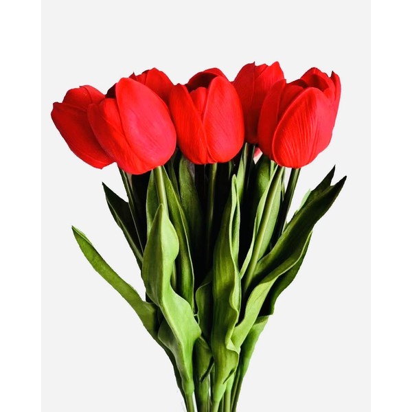 Meide Group USA 19" Real Touch Latex Artificial Tulip Flowers - Red (6 PCS), Flexible Wire Stems for Spring Arrangements, Bouquets, Wedding & Party Decor