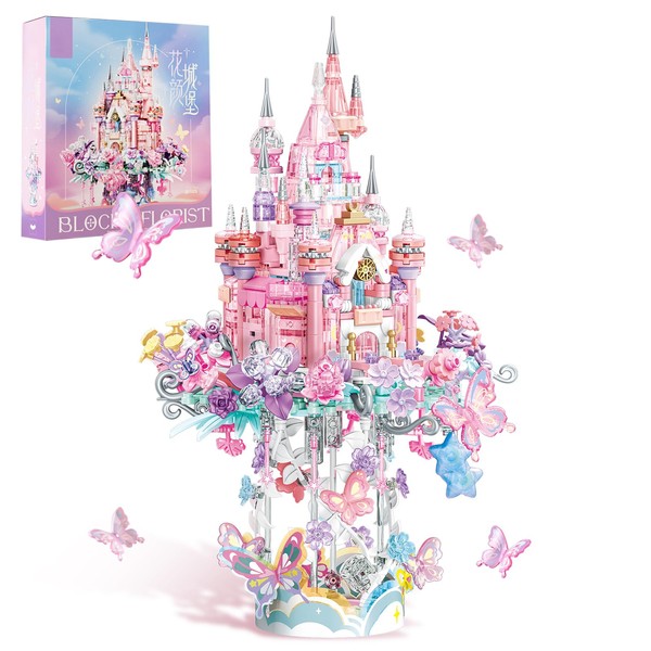 MEIEST Flower Castle Building Blocks Set,Dream Castle On a Cloud Particle Construction Building Bricks Toy,Flowers Butterfly Star Castle Home Decoration