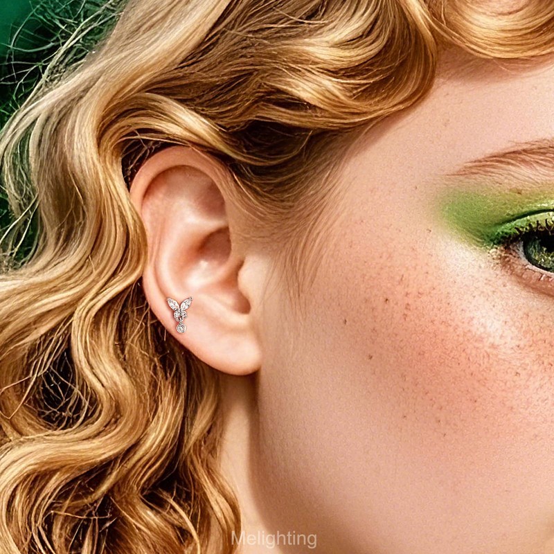 - Design of Cartilage Earring: This cartilage earring features an internally threaded bar with a dangling butterfly clear CZ for added sparkle. Made from durable 316L stainless steel, it combines lasting style with a touch of elegance
