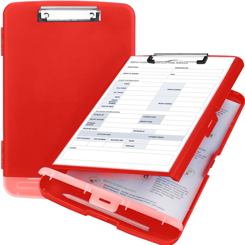 - High Capacity: Design of 2 separate storage compartment, paper storage space securely holds about 200 letter-size documents. At the bottom of the plastic clipboard there is a pencil holder that can hold 6 slim pencils. Roomy inside keeps the stationery neatly and orderly stored