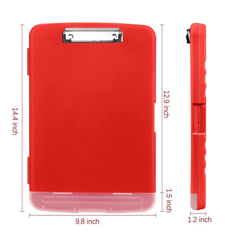- About Storage Clipboard: Clipboard measures 14.4 x 9.8 x 1.2 inches and weighs 440 g. Fits the standard 8.5x11 inch which is the letter size. Clip board is made of sturdy polypropylene and is easy to clean and wipe down. The durable, waterproof clipboard case keeps your important documents from getting wet