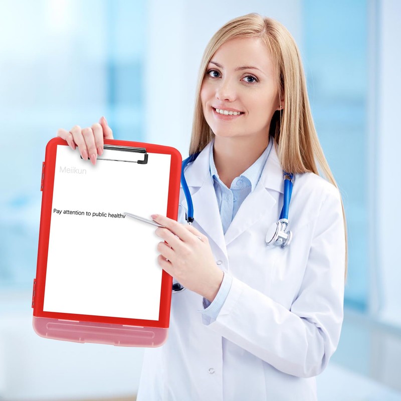 Meiikun Clipboard with Storage, Plastic Clipboards 8.5x11 with Pen Holder, High Capacity Nursing Clipboard Folder, Side Opening Storage Clip Board for Office Work Nurses Teachers (Red)