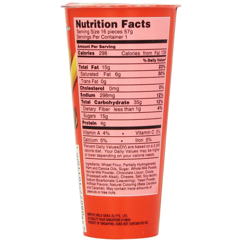 Meiji Yan Yan Chocolate Cream Dip and Crispy Cracker Sticks. Look Inside For Fun Words. Smooth Chocolate cream. Net wt 2 oz (57g).