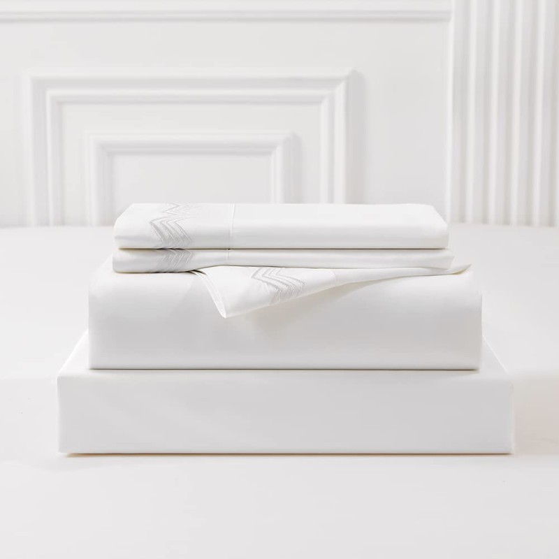 - ELEGANT DESIGN - Featuring fine embroidered stripes chevron pattern on the edge of pillowcases and hem edge of flat sheet, the set effortlessly creates an upscale look.