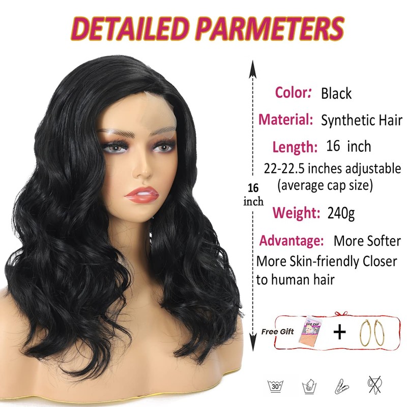 - 【Wig Style】: Black body wavy wig, side party glamour hairstyle, 16 inches long, new technology natural hairline is more realistic. It can be a middle score or a partial score. You can enjoy being attracted and beautiful by this best-selling style!