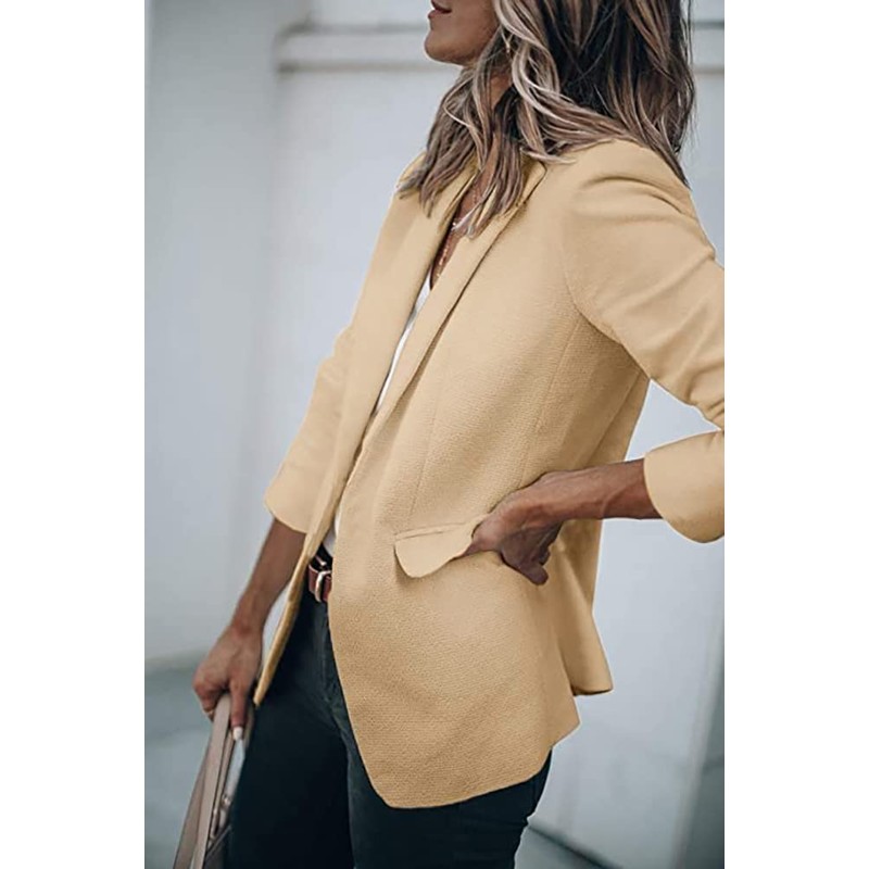 Meilleur moment Women's Casual Blazer Open Front Long Sleeve Lapel Work Office Business Blazer Jacket with Pockets Beige