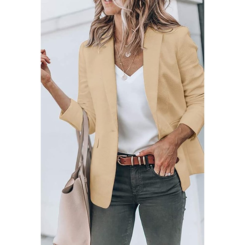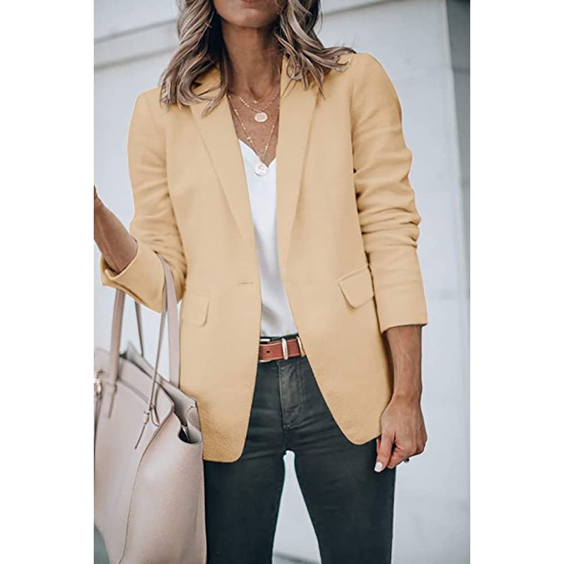 - Features: Women's basic lapel collar blazer jacket, fully lined, single front button, notch lapel placket, solid color, slim fit, two functional flap pockets, perfectly carrying some necessity, or nailing a chic look.
