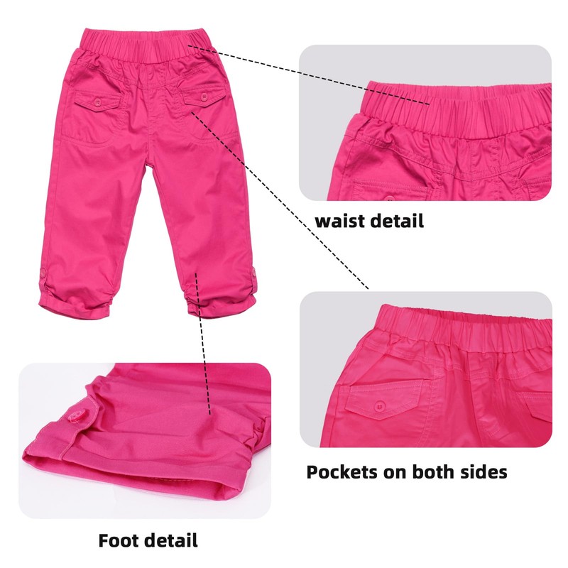 • These versatile shorts for girls are made to move and keep girls comfortable all day; these shorts sit below the natural waist (medium waist) with a relaxed fit. Elastic waistband helps to adapt to growing girls.