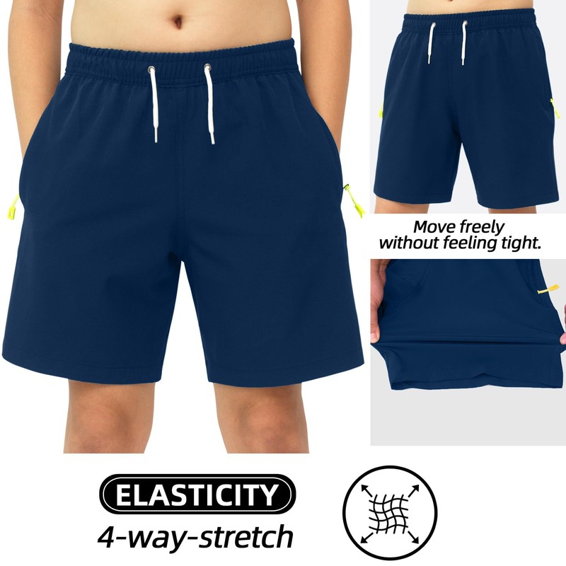 MEILONGER Swimming Trunks Boys Swimming Shorts Kids Quick-Drying Stretch Swimming Trunks Board Shorts with Mesh Lining Zip Pockets and Adjustable Drawstring, 25004 Marine