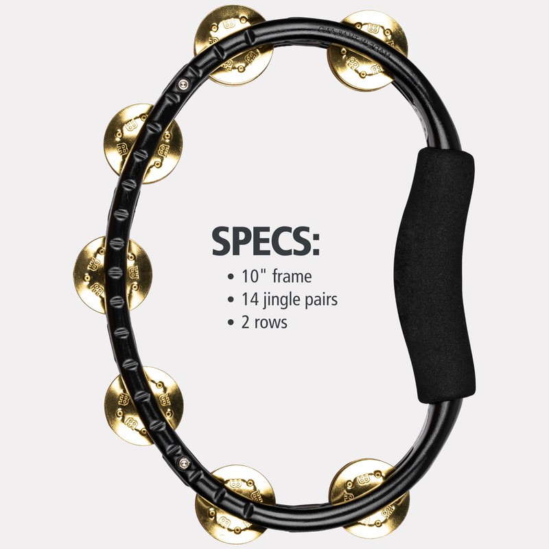 Meinl Percussion Traditional Handheld Tambourine Musical Instrument for Recording or Live — NOT Made in China — Double Row Jingles, 2-Year Warranty (TMT1B-BK)