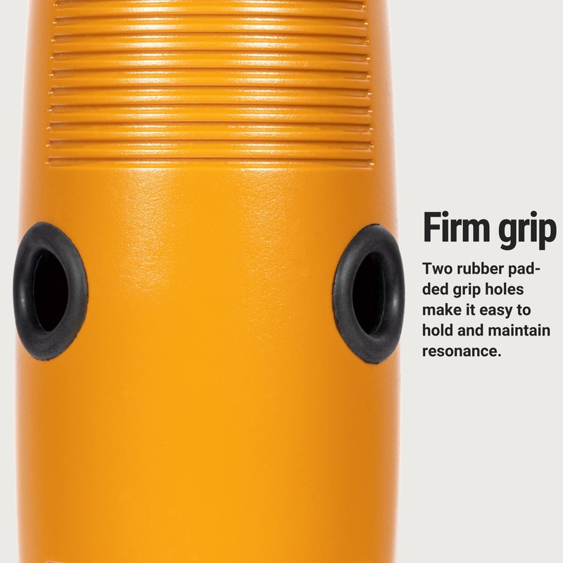 - ZOOM IN: two rubber lined grip holes on back make it easy to hold and maintain resonance while playing; use them with your fingers like a bowling ball grip