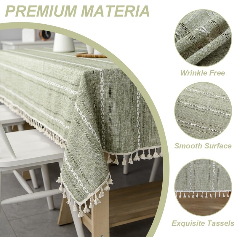 meioro Bohemian Tablecloth for Kitchen Decoration, R100 cm Macrame Tablecloth with Tassels, Rectangular Linen Table Linen, Striped Tablecloth, Mesh Tablecloths for Dining Table, Tabletop (Olive Green)