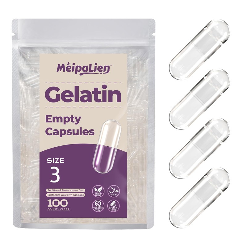 MéipaLien Empty Gelatin Capsules Size 3-100 Count Bovine Bone Gel Capsules Em...