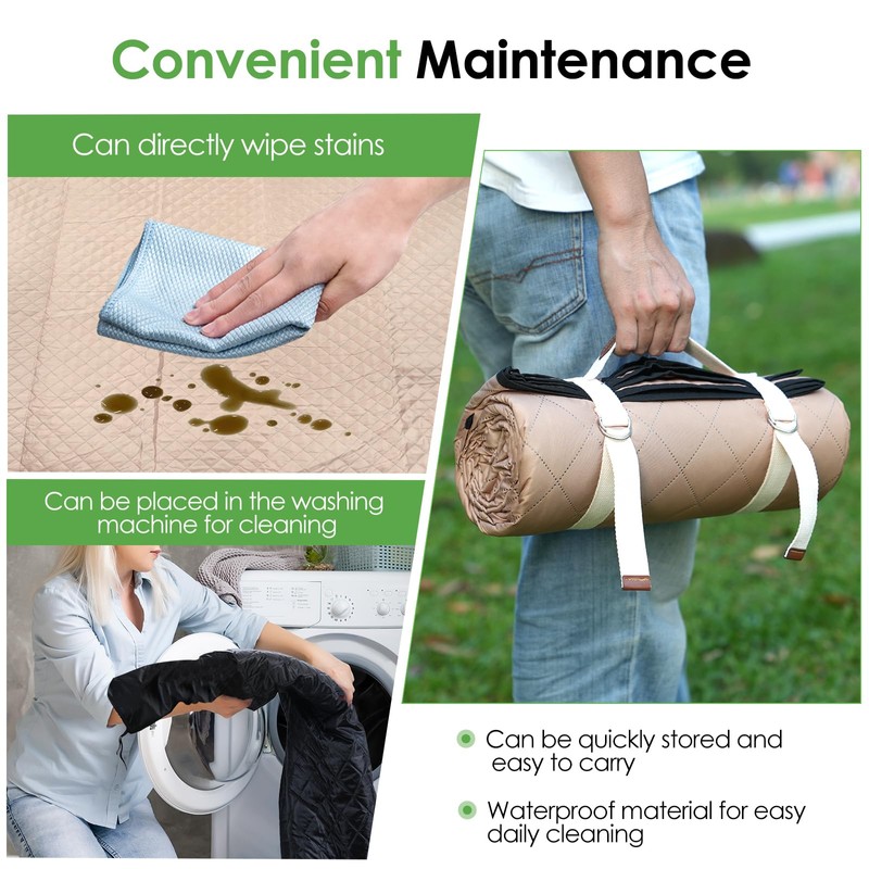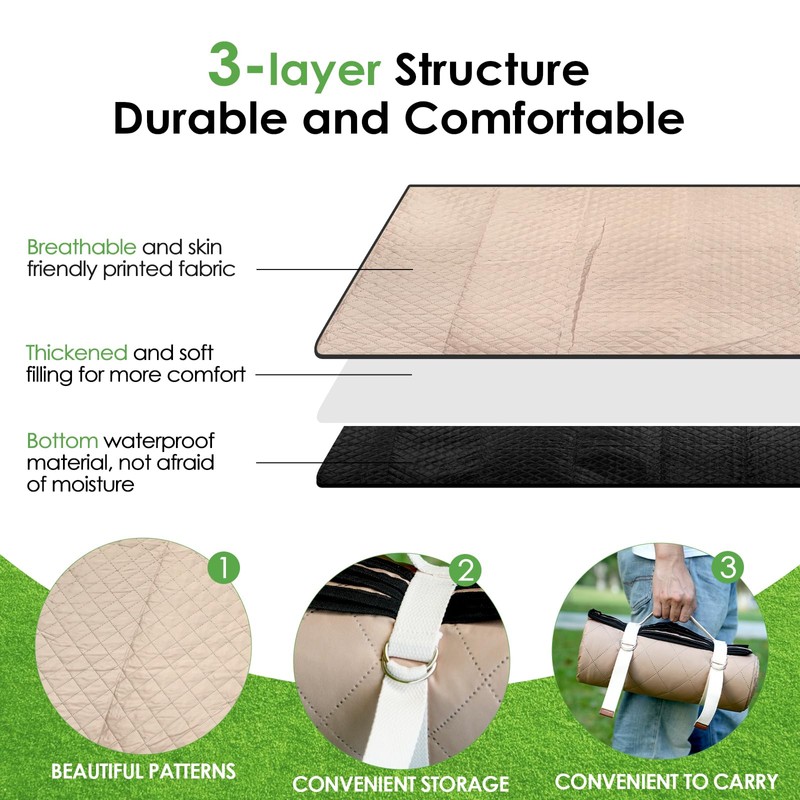 - Waterproof and Sandproof Outdoor Mat: Picnic blanket is made of PEVA material fabric, which has strong waterproof and anti sand functions, is very easy to clean and resistant to dirt. The unique moisture-proof design also makes your use more convenient.