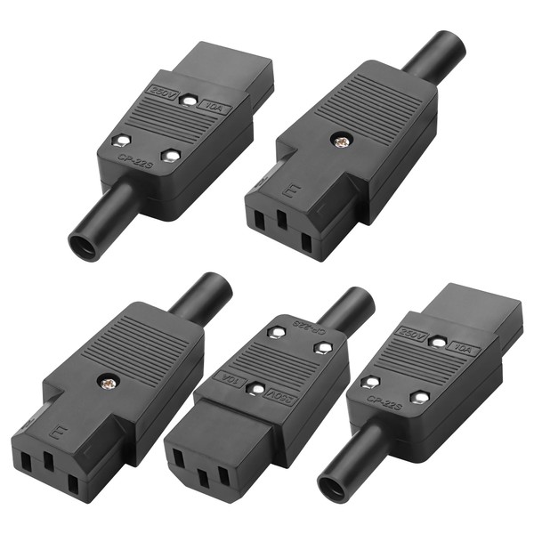 MEIRIYFA 3-Pin Inlet Power Plug Socket Connectors,IEC320 AC 250V 10A C14 Three-Hole Female for PDU Cabinets Industrial Engineering Dedicated (5PCS)(C13 Female)