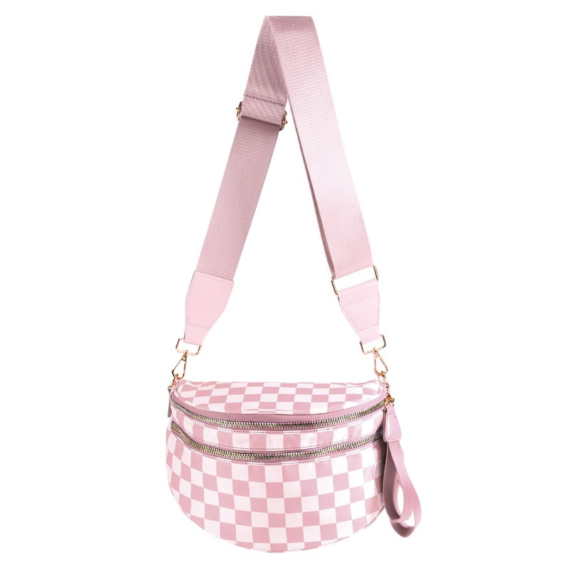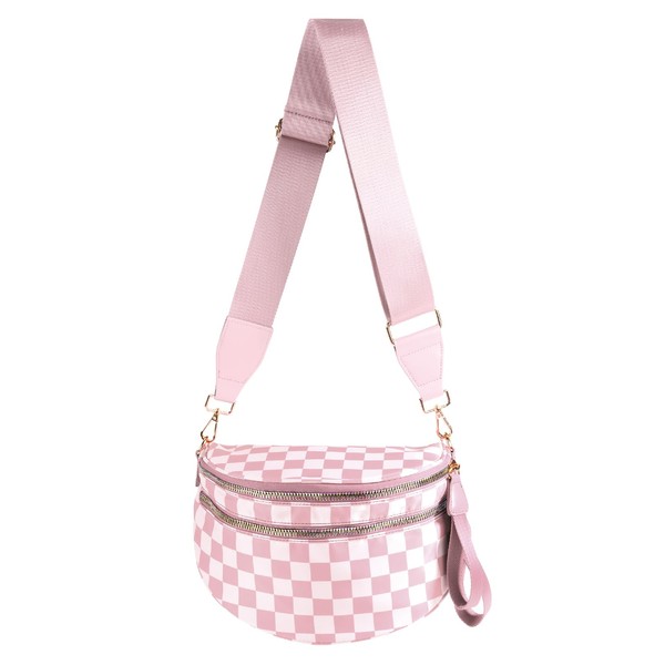 MEISEY Black and White Checkered Crossbody Bag Bum Bag for Women,Spacious Checkered Purse Fanny Packs Belt Bag Sling Bag with Shoulder Strap (Light Pink Checkered)