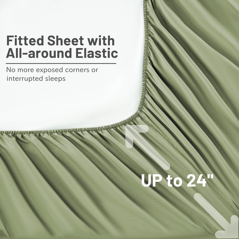 MEISHANG Extra Deep Pocket King Sheets Cotton - 1000 Thread Count Sheet Set - Fits 18"-24" in Deep Mattress,100% Egyptian Cotton,Sateen Weave, Soft & Breathable - 4 Piece (King, Olive Green)