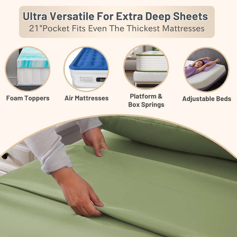 - Percale Extra Deep Pocket King Sheets: MEISHANG Extra Deep Pocket Cotton Sheet offers the most superior extra-deep pockets throughout the sheet to comfortably fit mattresses 18, 20, 21, 22, and 24 inches deep! The fitted sheets will not slip off and stay on all night. Perfect for foam toppers, air mattresses, and mattress pads, etc.