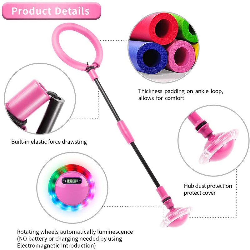MEISHANG Swing Wheel with Light Wheel, Jumping Ring Foot Spinner Children, Swing Wheel with Counter, Timer, Calorie Counter, Children's Flashing Jump Ring, Foldable Flashing Jumping Ball, Gifts for